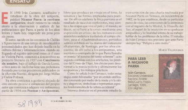 Para leer a Nicanor Parra [artículo] Mario Valdovinos