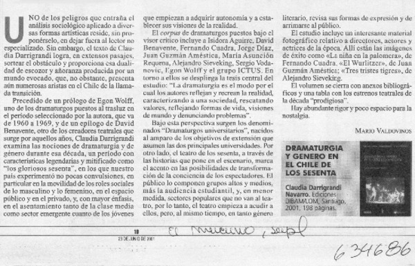Dramaturgia y género en el Chile de los sesenta [artículo] Mario Valdovinos