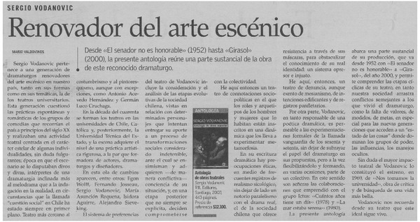 Renovador del arte escénico [artículo] Mario Valdovinos.