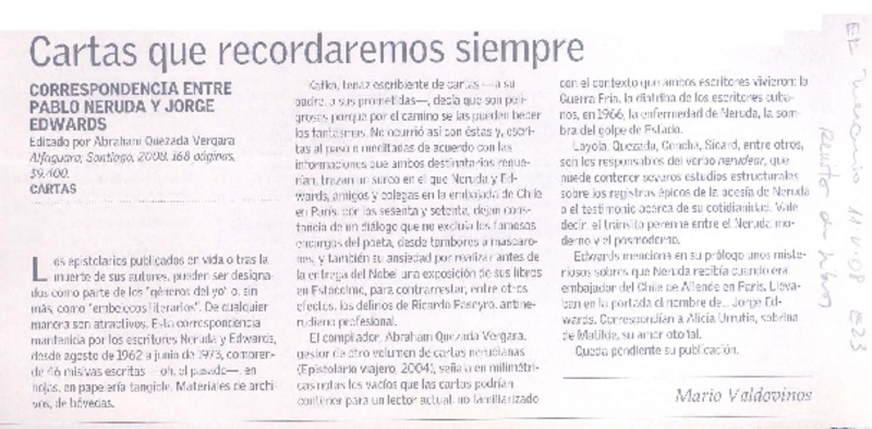Cartas que recordaremos siempre [artículo] Mario Valdovinos.