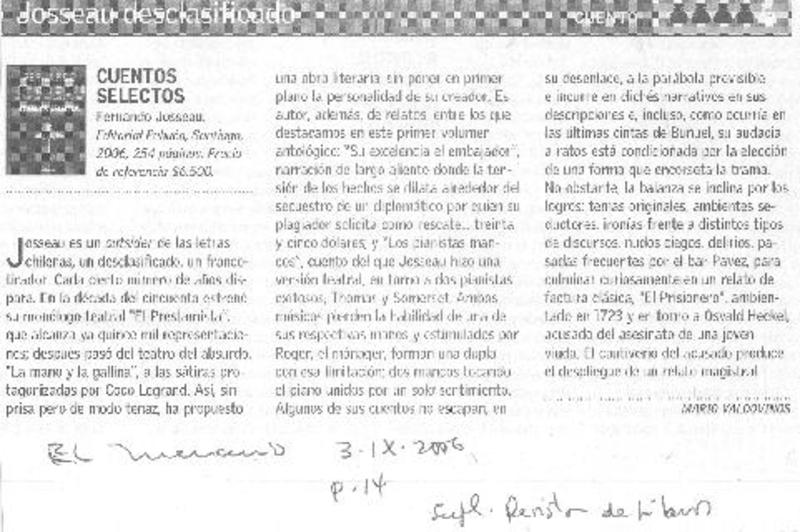 Autores chilenos - Josseau, Fernando - Cuentos selectos
