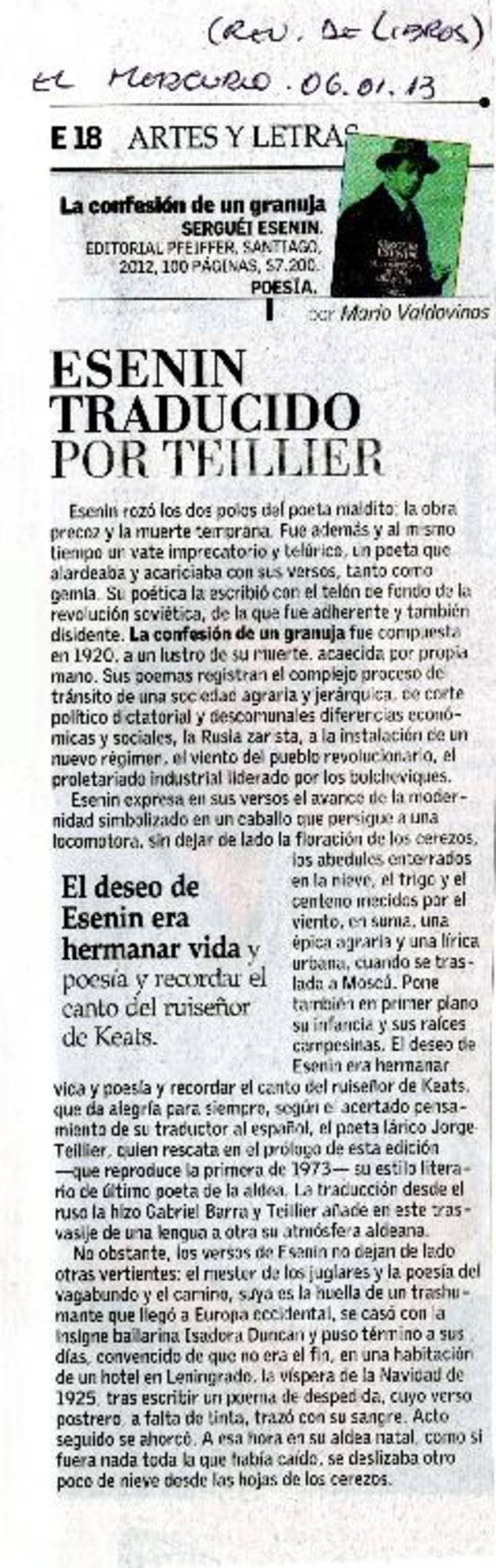 Esenin traducido por Teillier [artículo] Mario Valdovinos