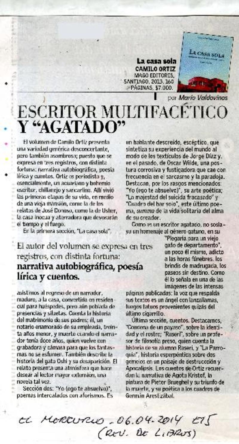 Escritor multifacético y "agatado" [artículo] Mario Valdovinos