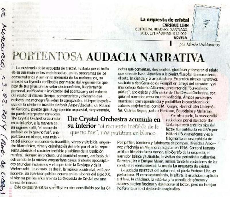 Portentosa audacia narrativa [artículo] Mario Valdovinos