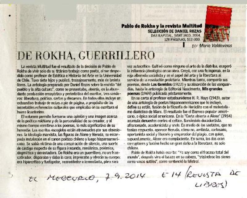 De Rokha, Guerrillero [artículo] Mario Valdovinos