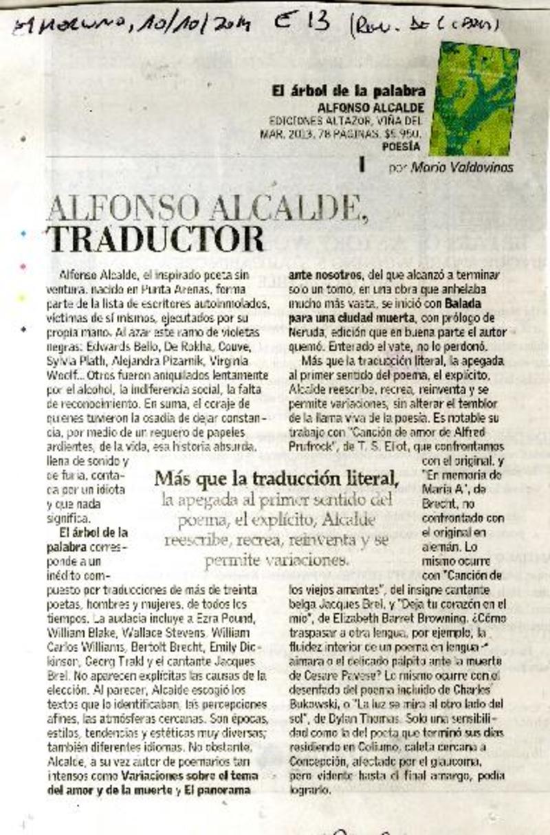 Alfonso Alcalde, traductor [artículo] Mario Valdovinos