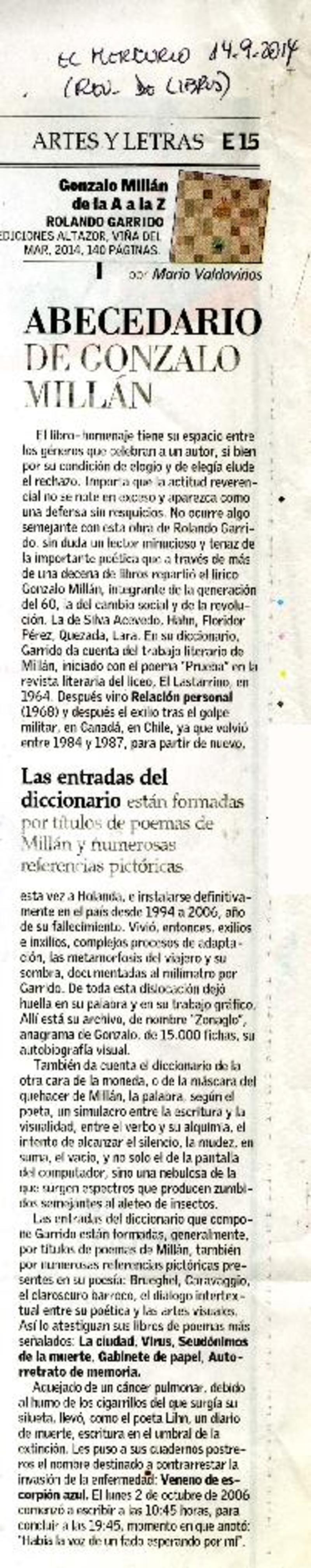 Abecedario de Gonzalo Millán [artículo] Mario Valdovinos