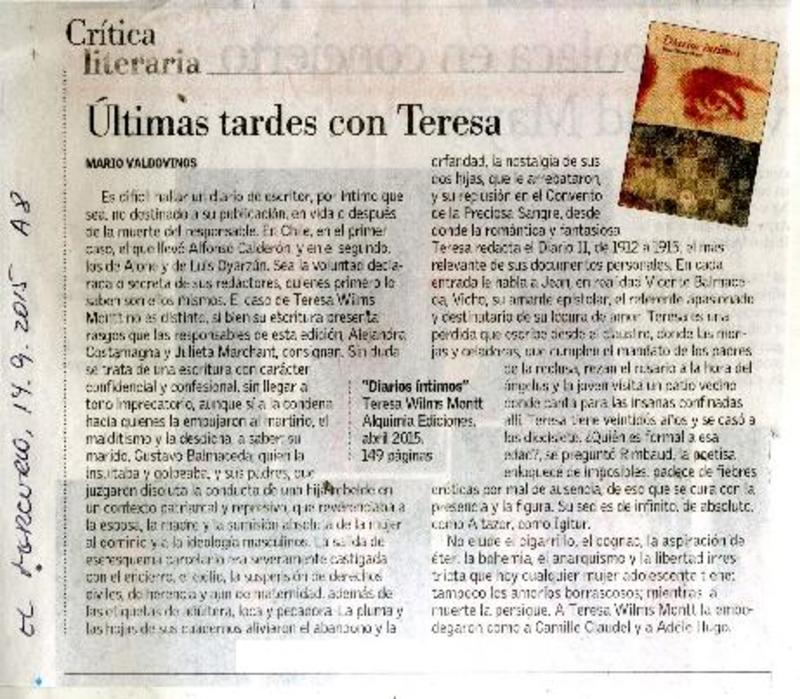 Autoras chilenas - Wilms Montt, Teresa - Diarios íntimos