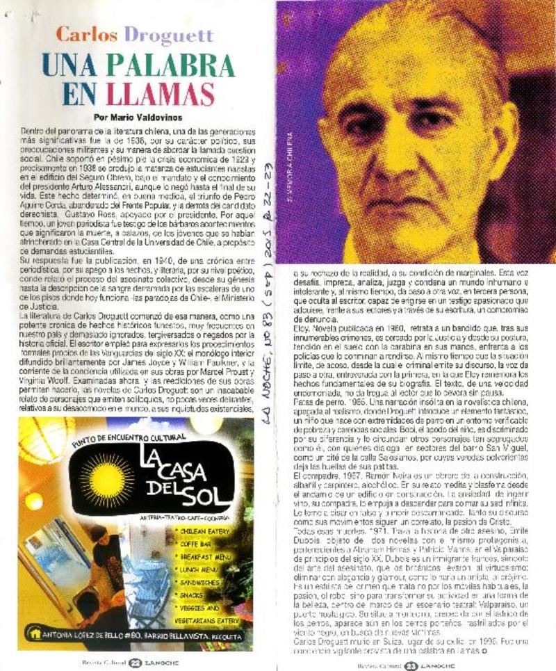 Una palabra en llamas [artículo] Mario Valdovinos.