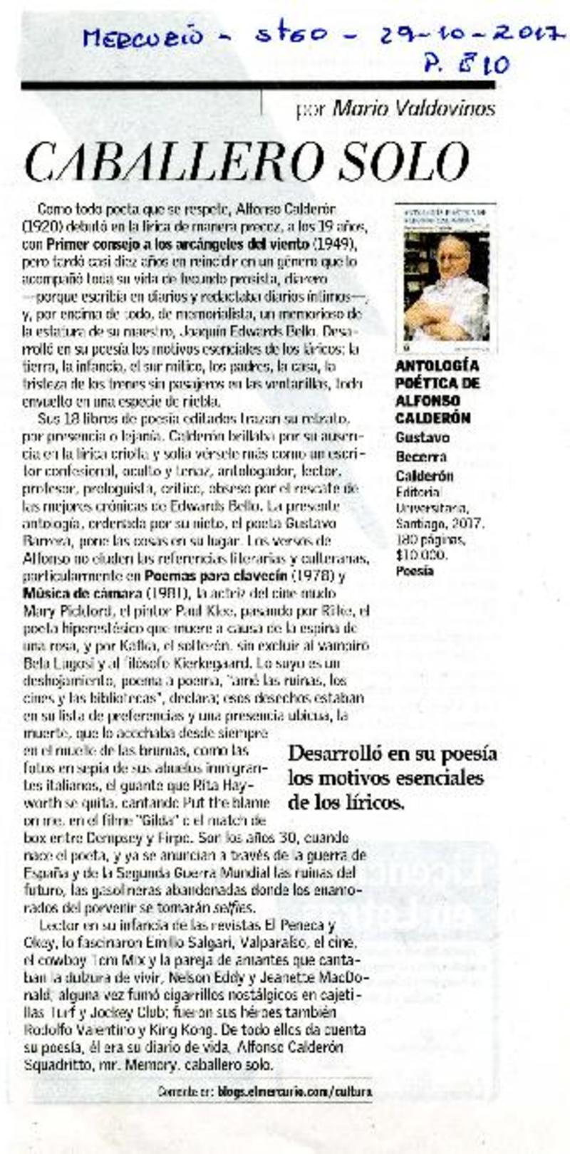 Tras las huellas del poeta itinerante : [artículo] Mario Valdovinos