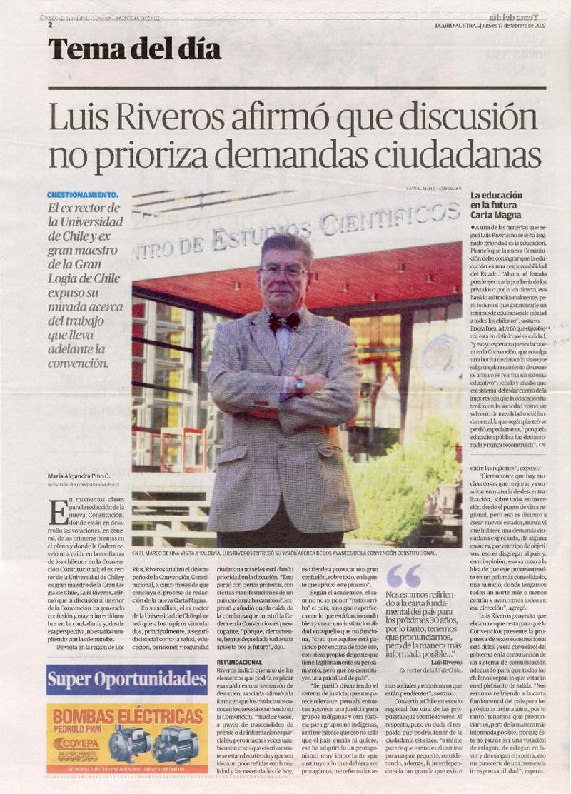 Luis Riveros afirmó que discusión no prioriza demandas ciudadanas [artículo] María Alejandra Pino C.