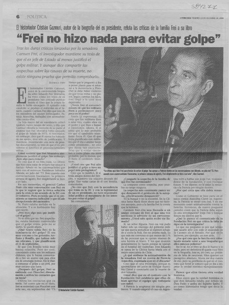 "Frei no hizo nada para evitar golpe" [artículo] Rodrigo Frey