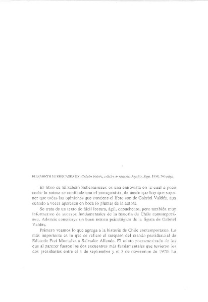 Autoras chilenas - Subercaseaux, Elizabeth - Gabriel Valdés, señales de historia