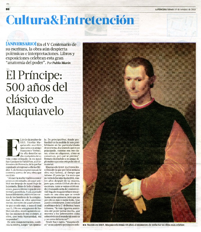 El Príncipe: 500 años del clásico de Maquiavelo [artículo] Pablo Marín