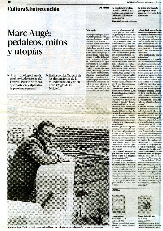 Marc Augè, pedaleos, mitos y utopias [artículo] Pablo Marìn.