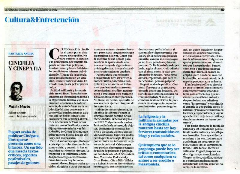 Cinefilia y cinepatía [artículo] Pablo Marín