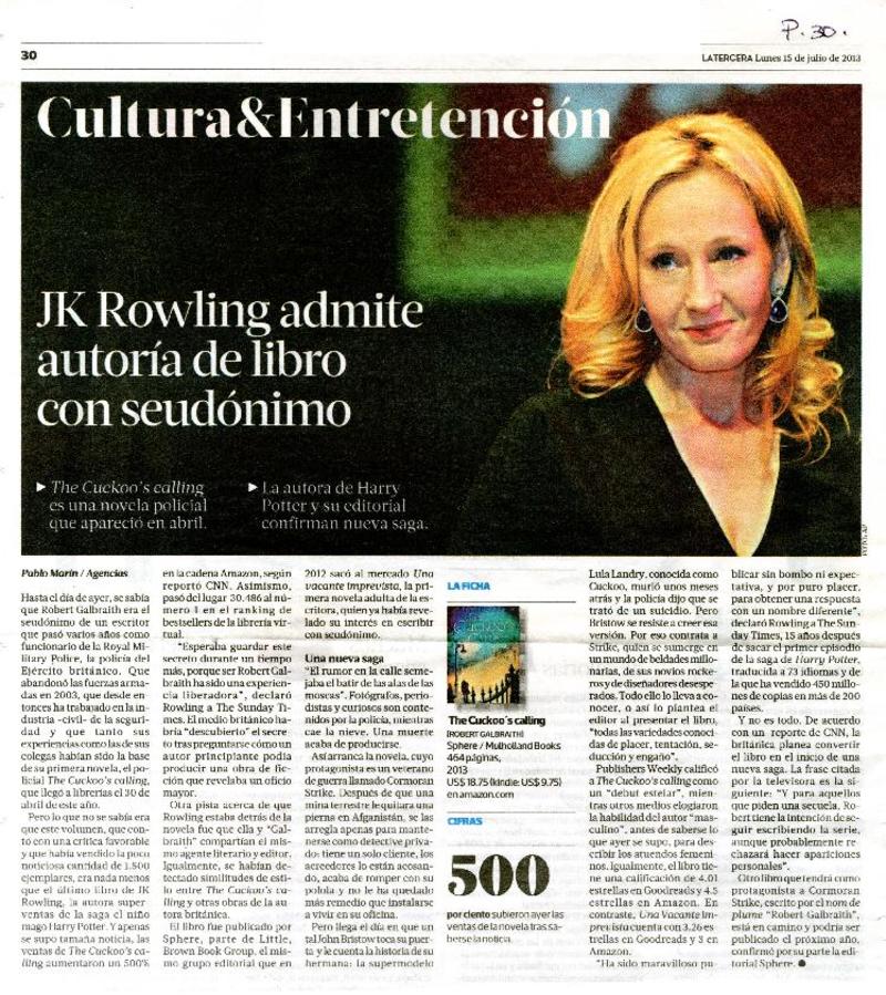 JK Rowling admite autoría de libro con seudónimo [artículo] Pablo Marín