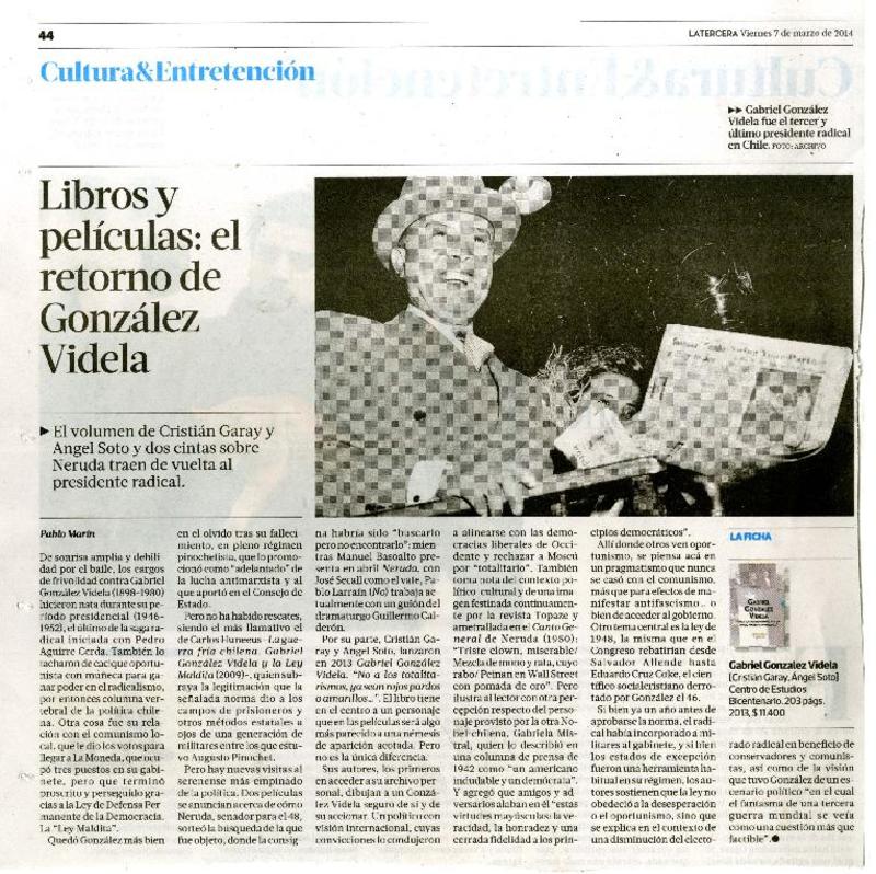 Libros y películas: el retorno de González Videla [artículo] Pablo Marín