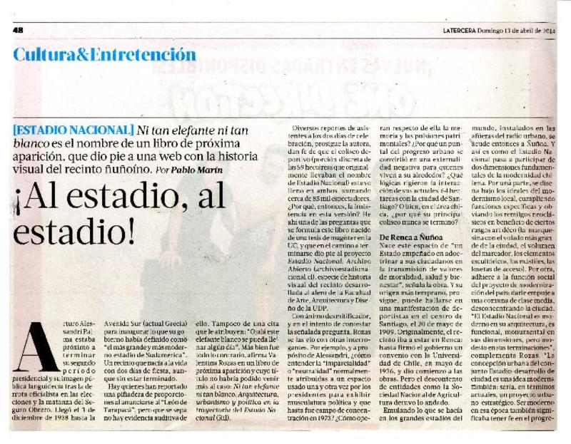¡Al estadio, al estadio! [artículo] Pablo Marín