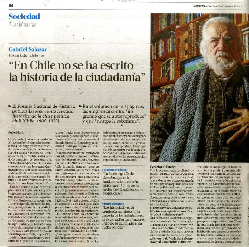 "En Chile no se ha escrito la historia de la ciudadanía" [entrevista] [artículo] Pablo Marín.