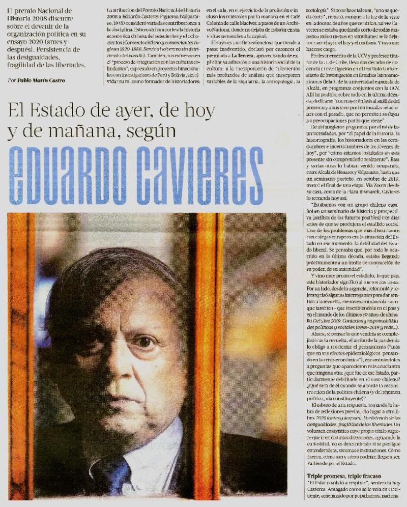 El Estado de ayer, de hoy y de mañana, según Eduardo Cavieres [artículo] Por Pablo Marín Castro.