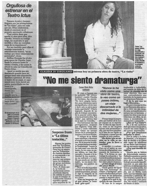 Claudia Di Girolamo estrena a fines de octobre su obra "La visita" [artículo] Javier Ibacache V.