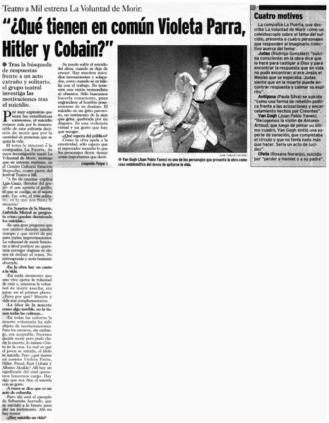 "Qué tienen en común Violeta Parra, Hitler y Cobain?" [entrevista] [artículo] : Leopoldo Pulgar I.