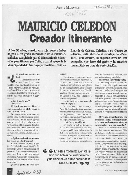 Mauricio Celedón creador itinerante [artículo].