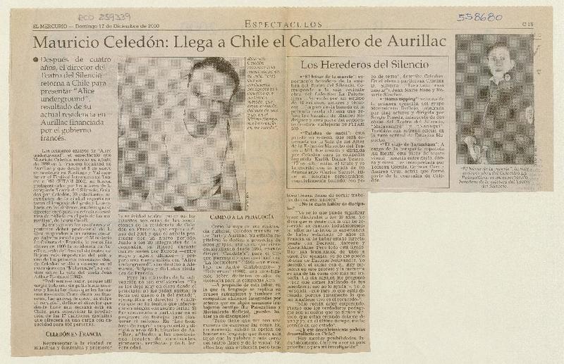 Mauricio Celedón, llega a Chile el caballero de Aurillac [artículo]