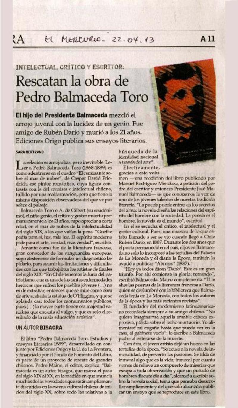 Rescatan la obra de Pedro Balmaceda Toro [artículo] Sara Bertrand.