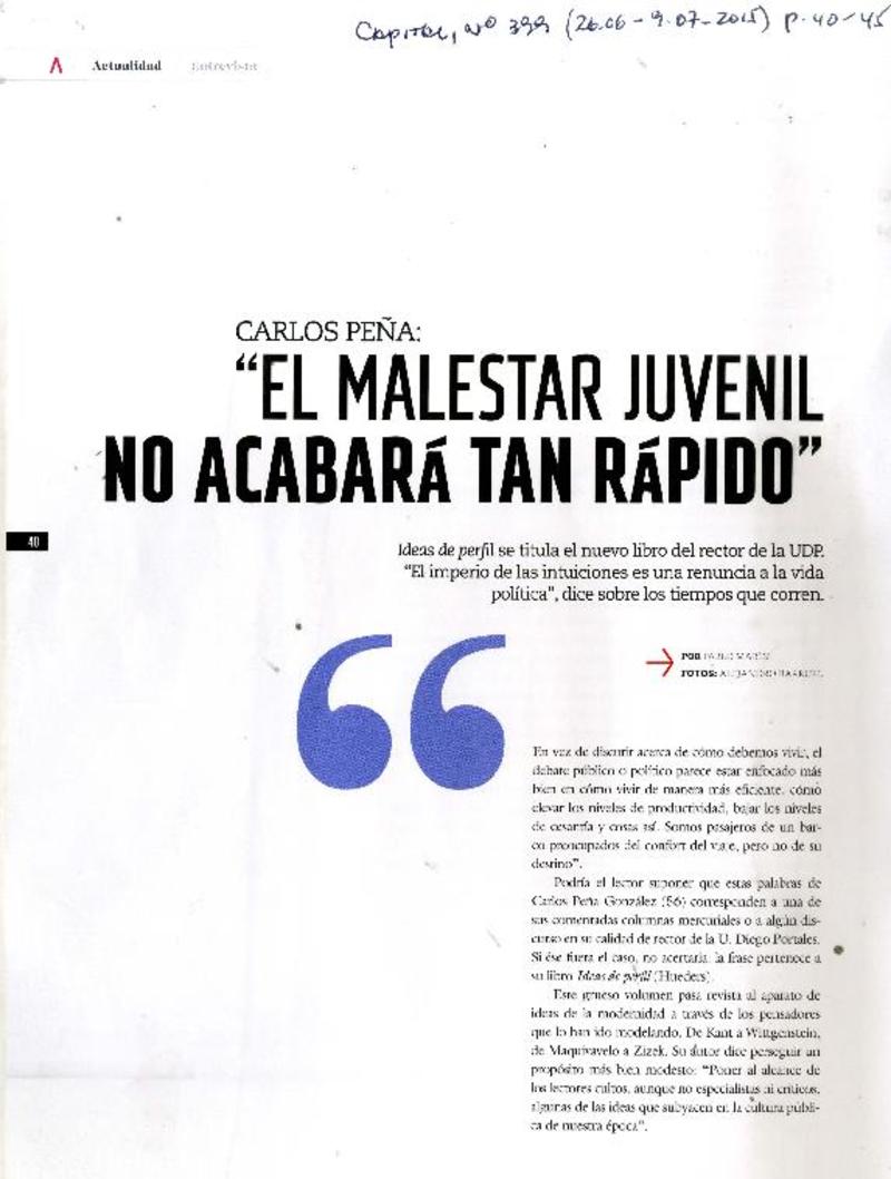 El malestar juvenil no acabará tan rápido [entrevista] [artículo] : Pablo Marín.