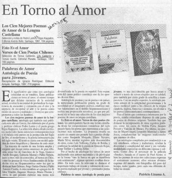 En torno al amor [artículo] Patricio Lizama A.