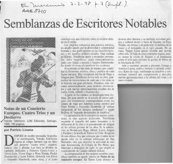 Semblanzas de escritores notables [artículo] Patricio Lizama.
