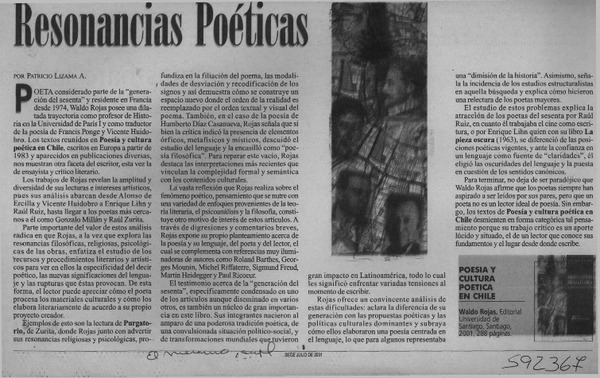 Resonancias poéticas [artículo] Patricio Lizama A.
