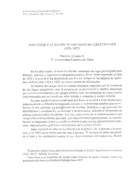 Jean Emar y La Nación de Santiago de Chile en París (1926-1927) [artículo] Patricio Lizama A.