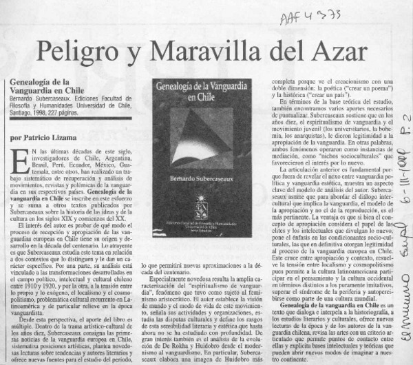 Peligro y maravilla del azar [artículo] Patricio Lizama.