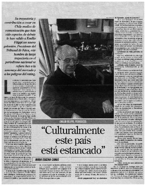 "Culturalmente este país está estancado" [entrevista] [artículo] : María Eugenia Camus.