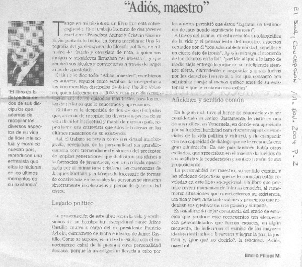 "Adiós, maestro" [artículo] Emilio Filippi M.
