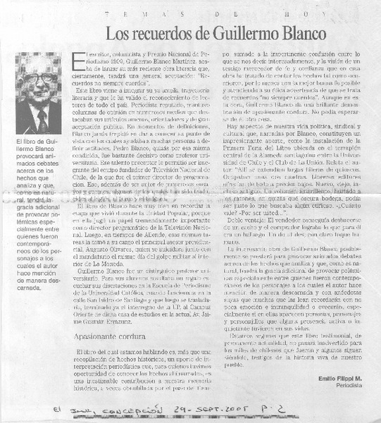 Los recuerdos de Guillermo Blanco [artículo]Emilio Filippi M.