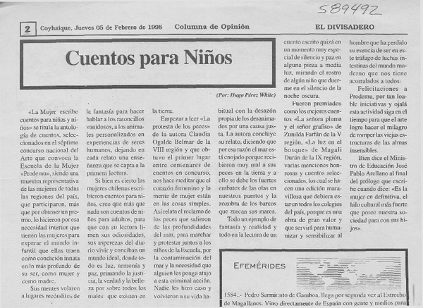 Cuentos para niños [artículo] Hugo Pérez White