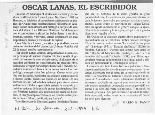 Oscar Lanas, el escribidor [artículo] Mario E. Banic.