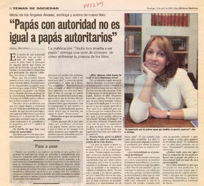 Autoras chilenas - Entrevista - Álvarez, María de los Ángeles - Nadie nos enseña a ser padres