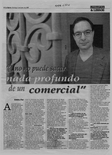 "Uno no puede sacar nada profundo de un comercial" [artículo] Ximena Poo.