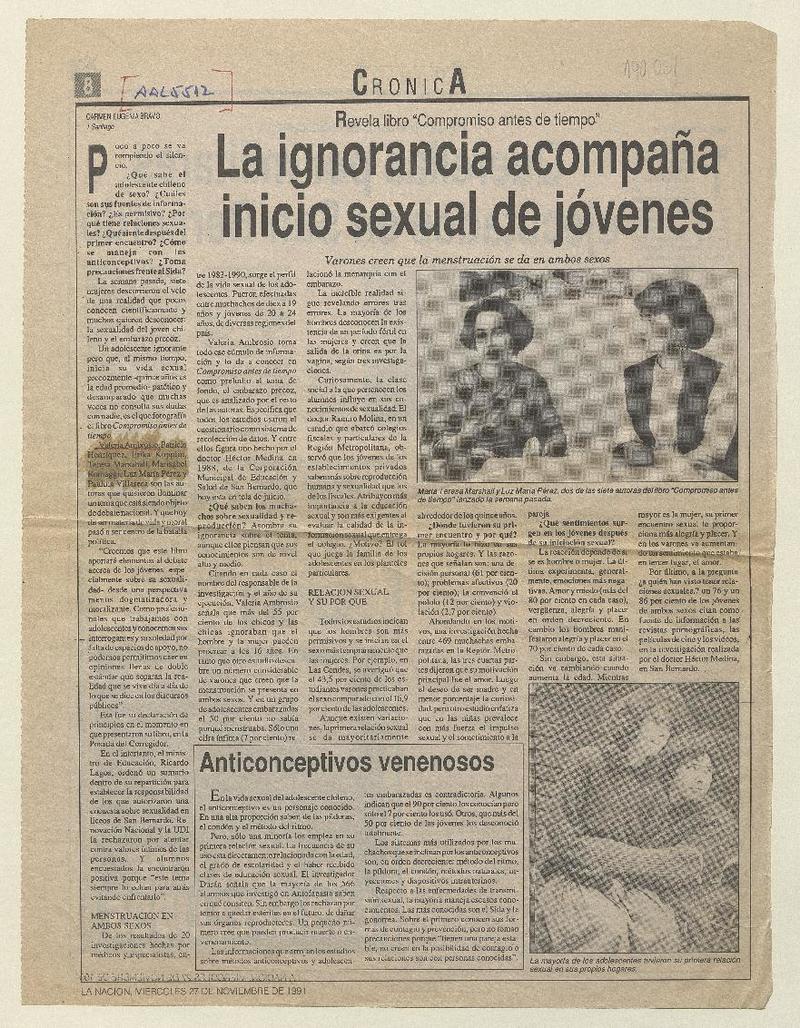 La ignorancia acompaña inicio sexual de jóvenes [artículo] Carmen Eugenia Bravo.