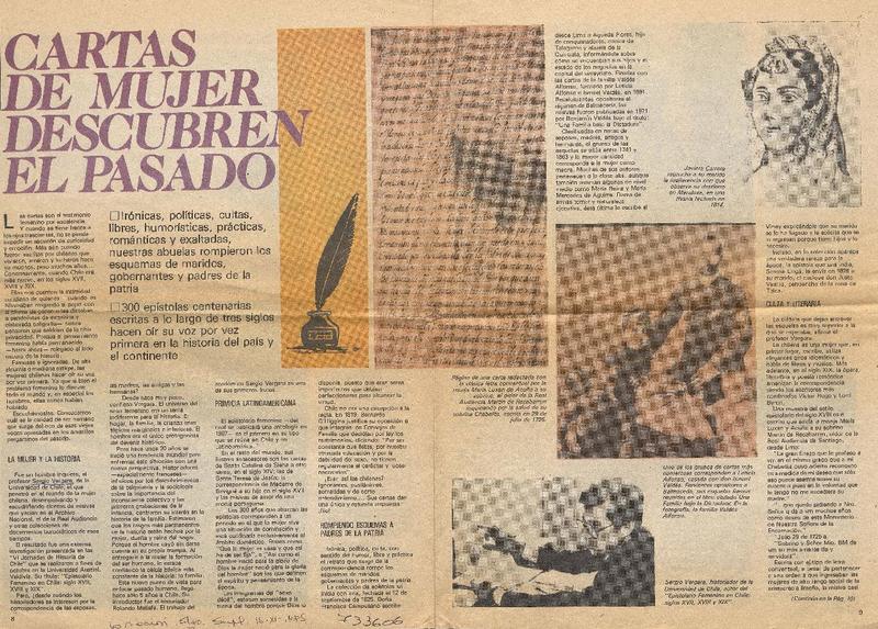 Cartas de mujer descubren el pasado [artículo] Carmen Eugenia Bravo.