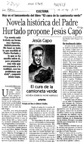Novela histórica del Padre Hurtado propone Jesús Capo [artículo] Elizabeth Orellana.