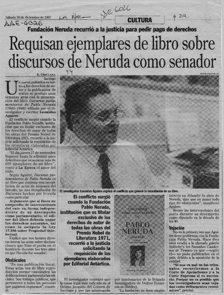 Requisan ejemplares de libro sobre discursos de Neruda como senador [artículo] E. Orellana.