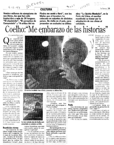 Coelho, "Me embarazo de las historias' [artículo] Elizabeth Orellana.