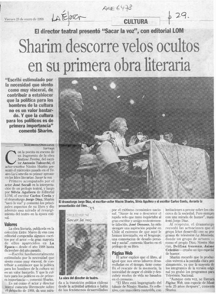 Sharim descorre velos ocultos en su primera obra literaria [artículo] Elizabeth Orellana.