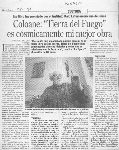 Coloane, "Tierra del Fuego" es cósmicamente mi mejor obra [artículo] Elizabeth Orellana.